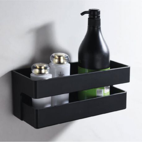 Jabonera rectangular negra mate, de PVC para colgar en la ducha, accesorio negro mate para baño.