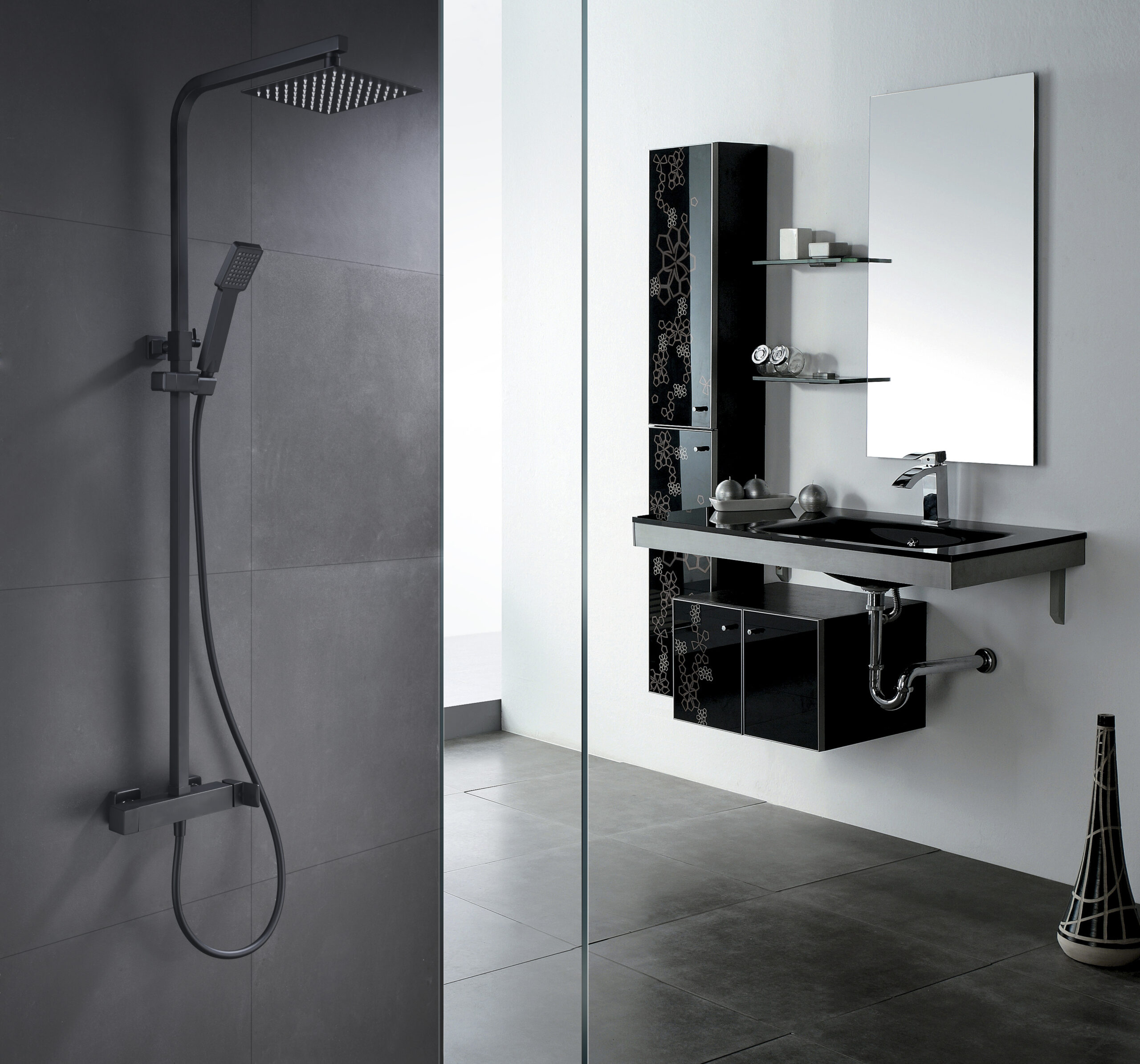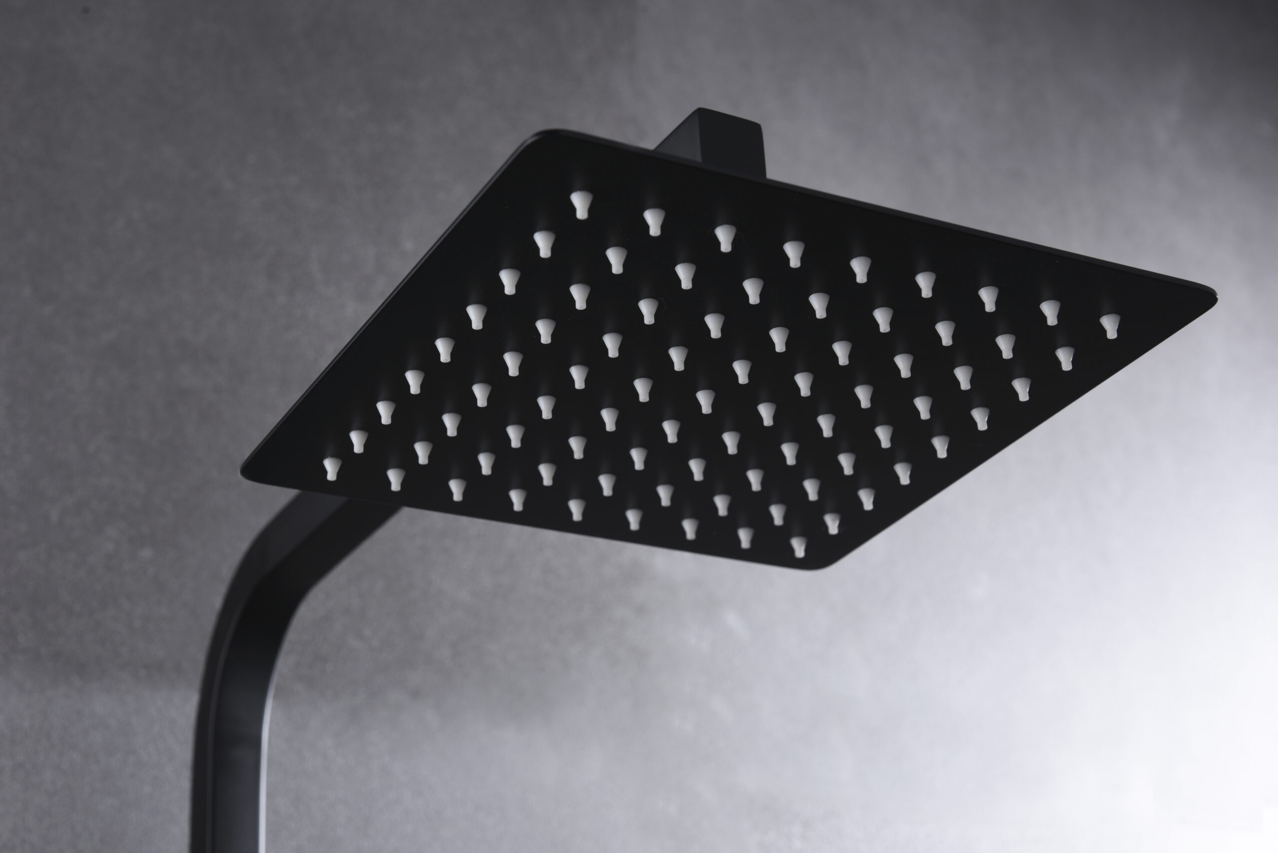 Rociador de acero inoxidable. Cuadrado 20cm, extraplano, negro mate y antical.
