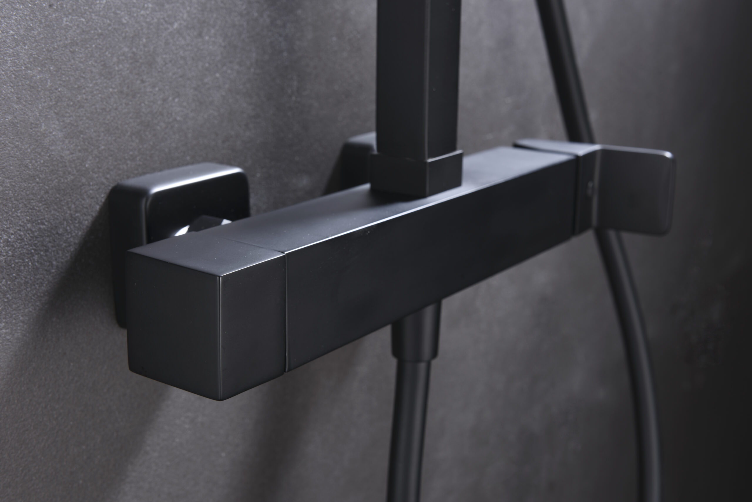 Distribuidor cuadrado de latón negro mate integrado.